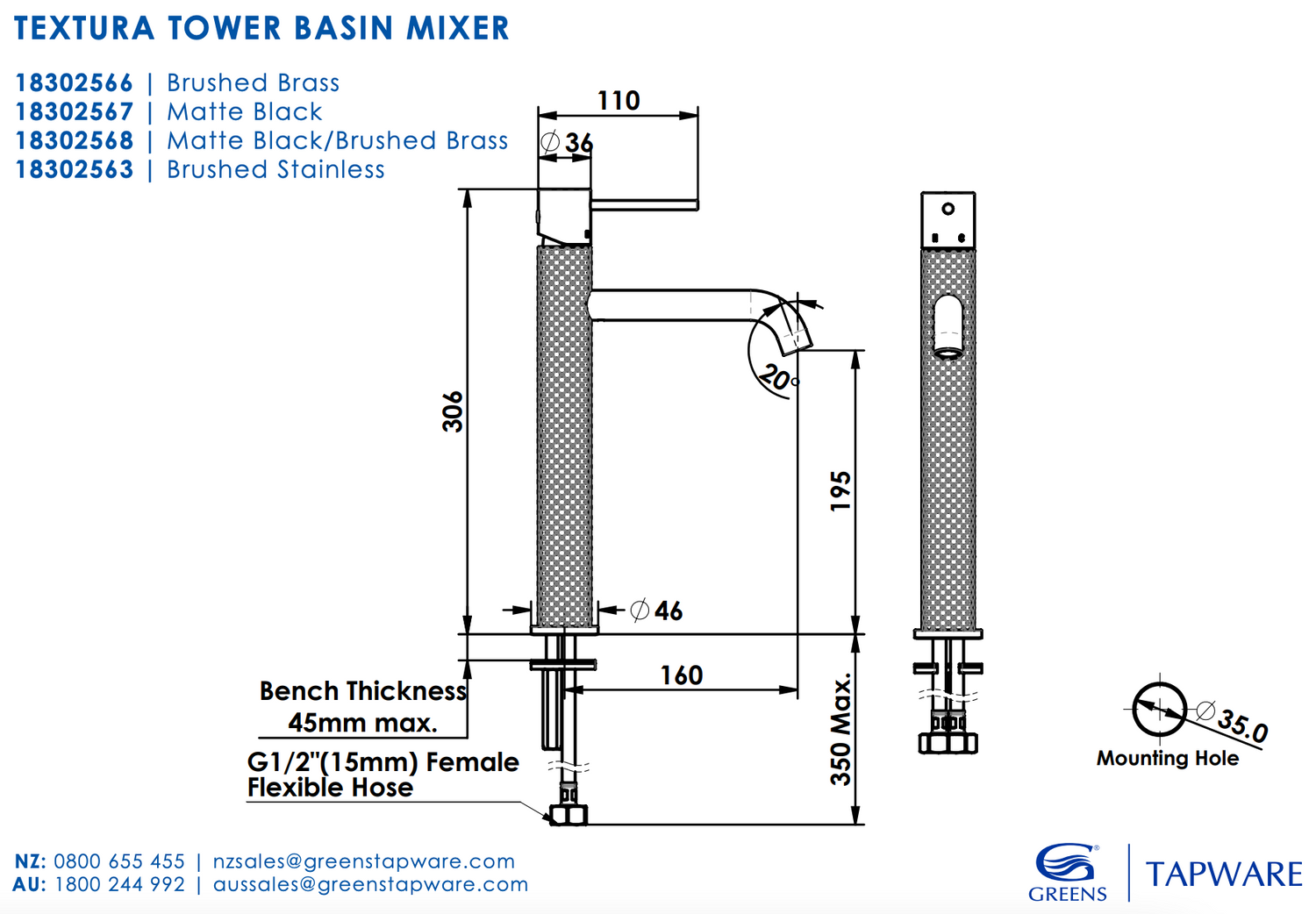 Textura stands out in the crowd bringing true textured finishes to the bathroom. With its unique textured finish, the Textura range adds a distinctive touch of luxury to any home. All Textura mixers are packaged with both a pin lever and non-pin lever handle options.