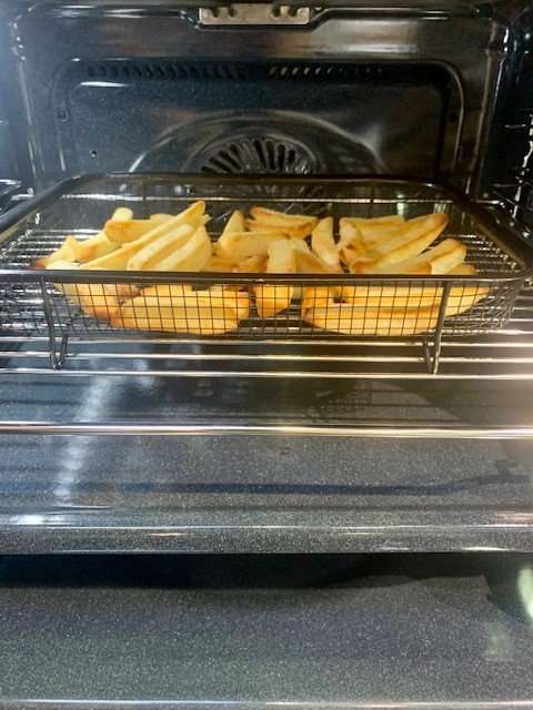 Convection Hot Air Frying: Air Frying works by the circulation of hot air producing a similar cooking result to Deep Frying, only without the oil. Although not an Air Fryer, the OMF6040K, with the use of an Air Frying basket and by following the recommended cooking instructions for fan forced cooking on the food packet will hot air fry your meals to perfection.