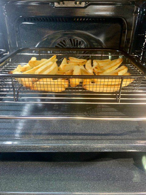 Convection Hot Air Frying: Air Frying works by the circulation of hot air producing a similar cooking result to Deep Frying, only without the oil. Although not an Air Fryer, the OMF6041X, with the use of an Air Frying basket and by following the recommended cooking instructions for fan forced cooking on the food packet will hot air fry your meals to perfection.